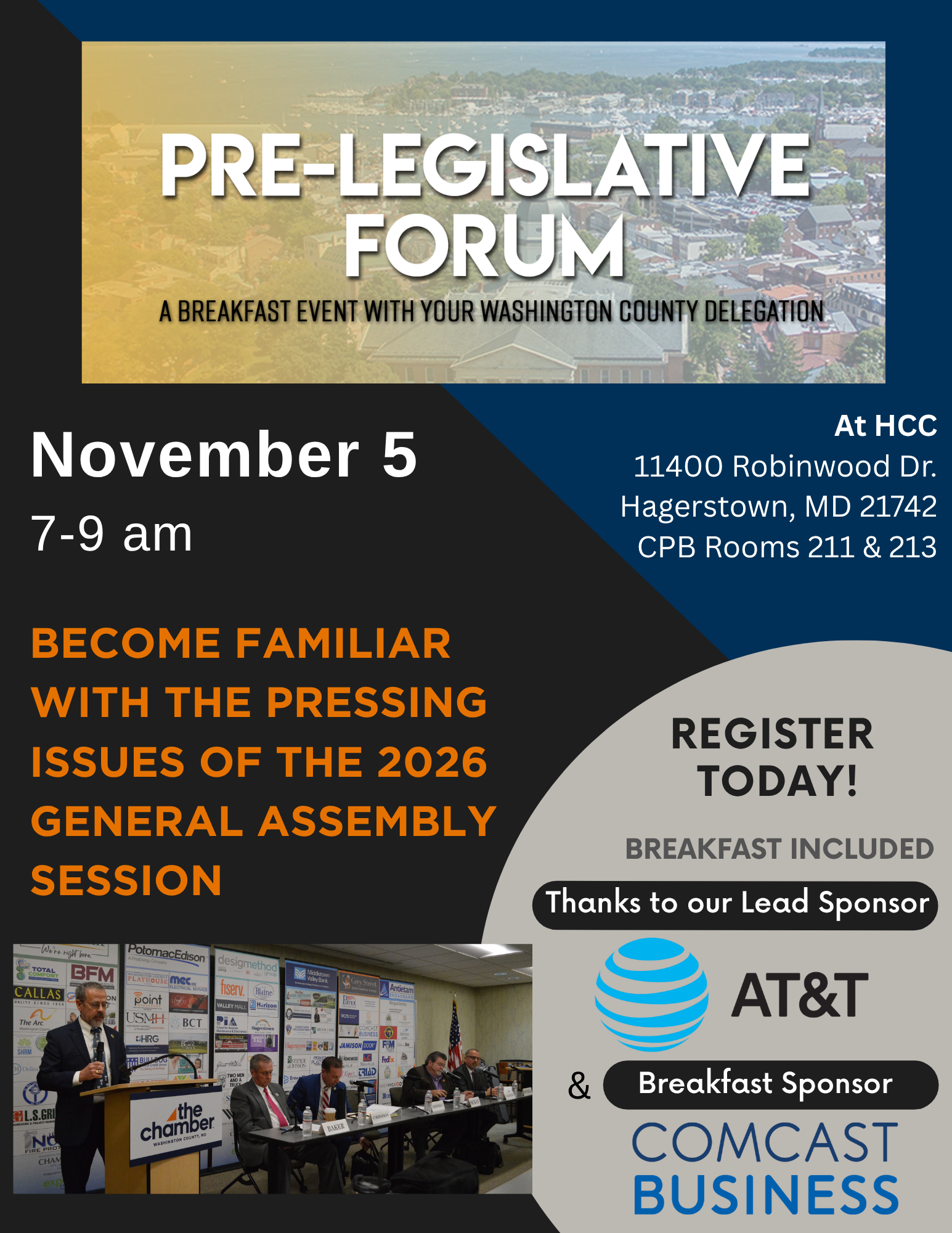 The Washington County Chamber of Commerce is offering you the chance to have breakfast with the Maryland state delegation and share your business concerns, face-to-face.